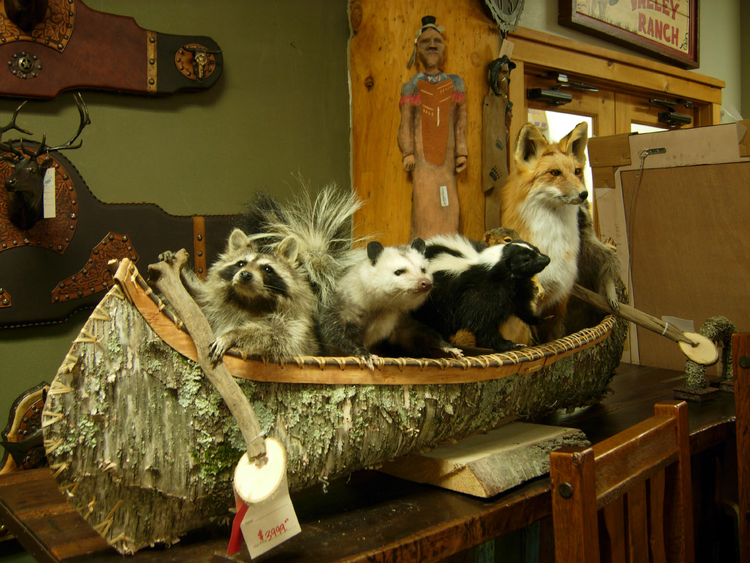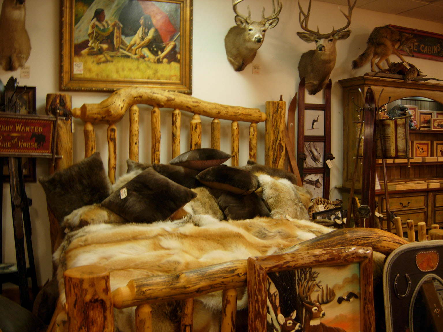 一排憨态可掬的木刻小熊;一船同舟共济的毛皮小动物;“印地安酋长”的大班台;“威虎厅里坐山雕”的原木大床;啤酒桶状的床头柜;鹿角的蜡烛台、吊灯……