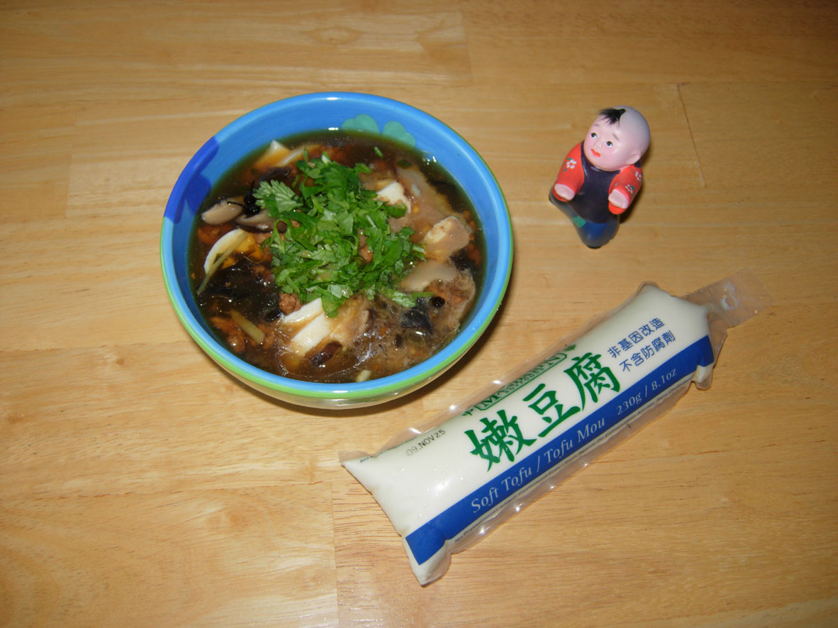 豆腐脑儿的料如下,像做打卤面那样打卤(要比打卤面的卤稀),我们的料给的太足,与豆腐比较,显得有些喧宾夺主了。做卤时加一两瓣大料。